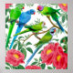 Pintura de papagaios coloridos com ameixa chefiada, derbyan, monge e periquitos índios do pescoço-da-serra pela artista aviária Carolyn McFann do Two Purring Cats Studio.