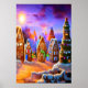 Uma pequena vila de pão de gengibre com mosca azul e alguma nuvem com um sol brilhante no céu. Esta é uma arte gerada por IA.