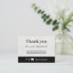 Personalize este cartão de marketing comercial moderno. Isso é perfeito para um negócio de comércio eletrônico, como uma butique, loja Etsy ou qualquer outra pequena empresa. Ele contém a frase "Obrigado pela sua empresa" e contém texto personalizável para explicar mais detalhes de ofertas especiais. O verso tem o logotipo da empresa. Este produto expressa a apreciação do cliente e incentiva os compradores a seguirem sua empresa nas mídias sociais com as informações fornecidas ao lado dos ícones de contato do Facebook, Instagram e YouTube.