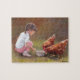 Esta quebra-cabeça apresenta uma reprodução de uma menina alimentando as galinhas.