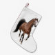 Decore seus casa e celeiro com a decoração original do feriado da arte para tudo que ama cavalos! Este cavalo árabe marrom da baía trotar pelo artista eqüino Carolyn McFann é imprimido vìvida em uma meia do Natal da qualidade no tamanho de sua escolha.