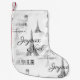 A torre Eiffel, as palavras "Joyeux Noël" (Feliz Natal em francês), Paris na tipografia do vintage, e as etiquetas francesas do vintage para o champanhe e o cacau fazem uma meia preto e branco bonita e interessante do Natal. Os artigos de harmonização estão disponíveis em minha loja de Zazzle.