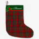 Meia bonita do Natal da xadrez feita no teste padrão real tradicional vermelho, verde, azul, amarelo, e branco do tartan de Stewart. A parte dianteira superior da meia é feita no verde, com uma banda vermelha do acento abaixo dela, e nos gráficos de um sprig verde e vermelho festivo do azevinho, à esquerda. Personalize o texto branco para serir suas necessidades.