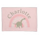 Maleta padrão da menina com um arco-íris e um design de dinossauro fofo em um fundo rosa macio. Personalize-o com o nome dela para torná-lo especial e decorar o quarto dela.