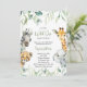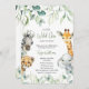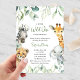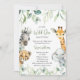 Bonitinho selvagem está no caminho o convite para chás de fraldas apresenta um verde bonito com animais cártaros de aquarela fofinha. Personalize com seus detalhes.
