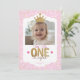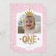 Celebre o seu primeiro aniversário em estilo com este convite cor-de-rosa e dourado, perfeito para a sua pequena princesa. (Trabalho de arte Gerado por AI)