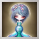 Pequena Sereia, bonitinha de flores de rosto