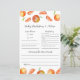Crie memórias duradouras e compartilhe risos com este Jogo de previsão e conselho do Chá de fraldas pequeno! Perfeitamente desenhado com um charmoso tema dos citros, este cartão é uma forma divertida e interativa de os hóspedes fazerem previsões sobre a chegada do bebê e oferecerem os seus melhores conselhos aos futuros pais. Com laranjas aquáticas e acentos de toranja, este jogo adorável adiciona um toque de cor e alegria a qualquer chá de fraldas. Concebido e ilustrado por Kristine Lee - www.kristineleedesigns.com