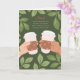 Este cartão do Dia dos Pais é para os amantes de café! Com o meu pai, eu sempre pude contar sobre o meu dia ou pedir conselhos enquanto tomávamos uma xícara de café juntos. Nós juntávamos as cabeças e não havia problema que não pudesse ser resolvido. Esta ilustração apresenta uma borda botânica e folhosa e duas mãos segurando xícaras de café. O texto diz: "Pai, Nada supera um momento a sós e uma boa xícara de café com você. A próxima é por minha conta."