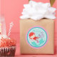 Doce sereia nadando com um adesivo de aniversário de peixes.