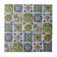 "Mistura Siciliana" , Pequeno azulejo cerâmico Decorativo com um design influenciado pelos motivos tradicionais sicilianos, criado e pintado pelo artista Alan Skyrme, que tem laços familiares com a ilha. Esse azulejo é grande (4,25 pol. x 4,25 pol.) e apresenta uma seleção de designs azulejos sicilianos em formato cinco x cinco, feitos para criar a sensação de azulejos cerâmicos pintados individualmente. O azulejo também está disponível em grande tamanho (6 polegadas quadradas). Ideal para uso interno em cozinhas, áreas de churrasco ou qualquer parte da casa onde a cor é importante para a ambiência. Estes azulejos não são recomendados para utilização no exterior. Proteger da exposição à luz solar direta.