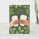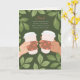 Este cartão do Dia dos Pais é para os amantes de café! Com o meu pai, eu sempre pude contar sobre o meu dia ou pedir conselhos enquanto tomávamos uma xícara de café juntos. Nós juntávamos as cabeças e não havia problema que não pudesse ser resolvido. Esta ilustração apresenta uma borda botânica e folhosa e duas mãos segurando xícaras de café. O texto diz: "Pai, Nada supera uma conversa sincera e uma boa xícara de café contigo. A próxima é por minha conta."