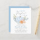Um convite para o chá de um bebê bonitinho e econômico com "uma abóbora doce está a caminho" escrito em tipografia azul e um roteiro de cinza macia com um inchaço cardíaco, e buquê de aquarela de uma abóbora azul pastel, flores de laranja e pêssego e verde. Personalize o nome da mãe em um roteiro azul-na moda e os detalhes do chá em uma simples tipografia de cinza mole.