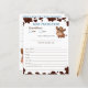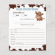Jogos de chá de fraldas Pequeno cowboy no caminho do cavalo bebê com padrão de vaca azul e marrom em um chapéu de cowboy predições e conselhos para os novos pais cartões jogos de chá de fraldas ocidentais