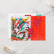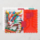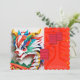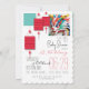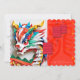Pequeno dragão de cor múltipla bonito no estilo origami. Design no convite de cartão plano com um grande e antigo ideograma chinês em um fundo vermelho claro + lanternas chinesas estilizadas cor-de-rosa em frente e atrás, em quadros brancos traseiros para fotos + texto para o chá de fraldas personalizar. Perfeito para o novo nascer no Ano do Dragão Chinês.