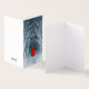 Pequeno Chapeuzinho Vermelho em um inverno nevado caminha pela floresta. Conseguem ver o Lobo Mau a uivar à distância? Uma versão granulada de uma pintura de aquarela negativa.