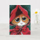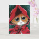 Diversão todas as ocasiões saudando o cartão com uma reviravolta no conto de fadas infantil. Se o Chapeuzinho Vermelho fosse um gato, ela seria uma tábua de gengibre. Ilustração química de um gato de mesa laranja vestindo um manto vermelho de capuz. Criada de uma pintura original © Lisa Marie Robinson. Todos os direitos reservados.