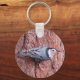 Os amantes de pássaros e da natureza vão desfrutar dessa chaveiro com um Portão Branco Brerado com fundo de latido de pinho. Você pode até adicionar texto ou personalizá-lo com um nome. "Bonitinho Nuthatch" © Penny's Design Compro.