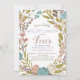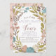 Este belo convite de aniversário da "nossa pequena flor selvagem está transformando x" apresenta um fundo branco com flores em rosa, azul e branco. O verso apresenta um fundo cor-de-rosa pincelado com padrões florais. Altere a cor de fundo e personalize para suas necessidades. Você pode encontrar mais produtos correspondentes na minha loja.