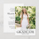 Convites de festa de formatura elegantes com tipografia clássica e uma foto personalizada. Este cartão de formato pequeno é perfeito como um inserto conveniente com anúncios de formatura ou como um convite autônomo. Você pode personalizar o modelo com o nome do formando, ano de formatura, data da festa, horário, local e detalhes de confirmação de presença. Concebidos com uma estética sofisticada e minimalista, estes convites são ideais para graduados que apreciam o estilo atemporal. São perfeitos para celebrações de formatura do ensino médio, faculdade ou universidade. Cores impressas: preto e branco, ou personalize a cor para combinar com a sua universidade, escola ou faculdade. Disponível como cartão impresso ou download digital.