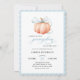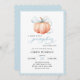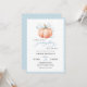 Este elegante e charmoso convite para chás de fraldas apresenta uma bela ilustração aquosa de uma abóbora com uma delicada fita azul, perfeita para celebrar a chegada iminente de um pequeno na estação do outono.