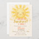 Celebre o grande dia da sua luz do sol com este doce e alegre convite para primeiros aniversarios! Com um sol sorridente, nuvens de aquarela macia e tons de amarelo quente e coral, este design é perfeito para aniversários de verão ou festas com temas brilhantes. Personalize facilmente o nome do seu filho, a data da festa, a hora e os detalhes de RSVP. Uma forma alegre e memorável de convidar amigos e familiares para este marco especial.
