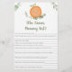 Esses adoráveis que conhecem as melhores cartas de Mamãe são uma atividade de Chá de fraldas divertida. Simplesmente passe-os durante o Chá de fraldas onde os convidados se divertirão a responder a perguntas sobre a mãe a ser! A pessoa com as vitórias mais corretas! O design apresenta um verde de aquarela com uma clementina fofinha.