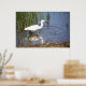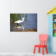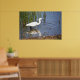 Um poster mostrando uma pequena pesca de Egret na reserva de Frampton Marsh. O reflexo do pássaro está claro na água ao lado dele.