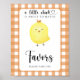"Um pequeno frango está a caminho". Celebre com esta festa de chá de fraldas de galinha de cartoon! Pintinho bonitinho de aquarela com cara de bebê. Gaiola laranja.