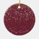 Enfeites de natal apresentado em Plum Wine com uma forma redonda, com um belo Ouro das estrelas impressão e um texto de Feliz Natal. Personalize este item ou comprar como está.