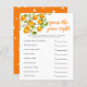 Cartão de jogo "o preço está certo", com chá de fraldas de tema bonito, com ilustração aquosa da fruta laranja numa árvore. Os textos são editáveis. Um jogo perfeito para jogar durante o chá. Enumera o essencial do bebê e aos hóspedes para adivinhar o preço. Quem quer que adivinhe o preço mais próximo ganha!