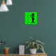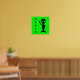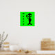 Um homenzinho verde dizendo "paz" em preto com olhos verdes brilhantes contra um fundo verde.