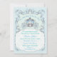 Este doce e fofo convite de chá de fraldas é criado com um sentimento vitoriano vintage. Ele apresenta um fundo azul monocromático e úmido com uma imagem de prata de ornamentado e uma "carruagem" de bebê.