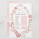 Cartão branco e rosa para jogos de Chá de fraldas de abóbora, Cartão cor-de-rosa para jogos de Chá de fraldas flórica, Cartão de jogos de Chá de fraldas Word Scramble.