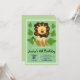 Pequenos convites de aniversário de leões, bem ajustáveis. Perfeito para o evento de festa temida da selva. Doce trabalho de arte de Valarie Wade. O texto ajustável é fácil de usar neste modelo personalizado. Cor de fundo verde escuro.