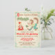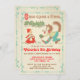 Bonito, retro Pequeno convites de festas de aniversários vermelho com o lobo grande e mau atraindo você para uma festa com fundo de floresta. Ilustração de safra retrabalhada em papel desbotado com barqueiro decorativo e tipografia divertida. Excelente para um livro de histórias, construir uma biblioteca ou fazer uma festa temática de livros.