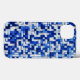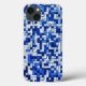 Pequenos quadrados sobrepõem-se, tons azuis com br