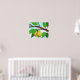 impressão de "Peras em Ramificação" com borda - design gráfico multimédia, desenho vetorial de peras maduras melhorado digitalmente num galho com folhas verdes