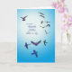 Expresse a sua simpatia pela triste perda de um sogro. Uma carta simples para expressar o mais triste dos sentimentos. Um bando de pássaros multicoloridos voa num céu azul.