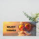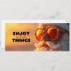 Père Noël à lunettes, en mode cool, face au coucher du soleil. Message : enjoy the little things.