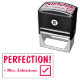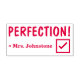 Este design de carimbo divertido apresenta a mensagem encorajadora "PERFECTION!" e o nome de um tutor personalizado. Ele também apresenta um ícone de marca de seleção decorativa. Ele poderia ser usado por um professor, educador ou orientador ao formando trabalho estudantil, para indicar que um aluno fez um trabalho excepcional.