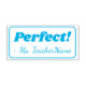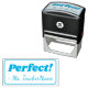 Este design de carimbo positivo apresenta a mensagem de elogio "Perfeito!" e um nome de educador personalizado. Pode ser usado por um professor ou educador ao formando o trabalho estudantil, para reconhecer que um aluno fez um trabalho excepcional.