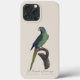 Esta elegante ilustração retrata um vibrante periquito empoleirado graciosamente em um galho curvo, renderizado no refinado estilo naturalista associado a Jacques Barraband. A obra de arte, intitulada La Perruche à front rouge, mostra uma atenção meticulosa aos detalhes da plumagem, com tons verdes ricos dominando o corpo, contrastados por uma testa avermelhada laranja impressionante e uma coroa azulada. A longa cauda afilada e o bico curvo do pássaro são característicos dos periquitos, enfatizando tanto o equilíbrio quanto a precisão anatômica típica da ilustração ornitológica do final do século XVIII e início do século XIX.