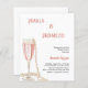 Um convite moderno, na moda e glamouroso para um Chá de panela de Pérolas e Prosecco. Um fundo branco com um copo com bolhas cor-de-rosa e pérolas. O nome é escrito com um moderno estilo escrito à mão. Personalize e adicione os detalhes da sua festa. 1 folha = 1 convite impresso de borda a borda.