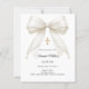 Celebre o Batismo ou Batizado do seu filho com este convite elegante com laço em marfim, projetado com um laço de cetim atemporal adornado com pérolas delicadas e uma cruz dourada clássica.
