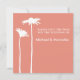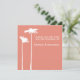 Este convite minimalista para salvar a data apresenta uma silhueta de um par de margaridas brancas sobre um fundo de persimão de pêssego, um simples esquema de cores de dois tons para um casamento de verão ou outono.