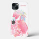 capas de iphone bonito, com impressão de aquarela de flamingo rosa, com flores e penas coloridas, decorando a cabeça. Personalize o texto cor-de-rosa para os corais, para si mesmo ou como um presente excelente para ela.