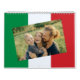 Um calendário de parede personalizável com bandeira italiana. Adicione suas fotos em cada página. Você pode alterar o início do mês, ano e tipo de calendário com qualquer país de sua escolha. Calendário personalizzato.