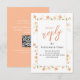 Este cartão de resposta do casamento apresenta um elegante design floral de pêssego emparelhado com um roteiro clássico de caligrafia para um toque formal e eterno. O layout simples inclui um código QR direcionando convidados para o seu site de casamento para RSVPs rápidos e fáceis. Ideal como placa de inserção de resposta ou placa de gabinete de resposta, é perfeito para primavera, verão ou casamentos outono. Uma na moda para manter a sua celebração organizada e maravilhosamente sobre-tema.
