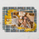 Cartão único, clássico, de moda, bonito e decorativo de Ação de Graças. Recortar com amor do texto e da sala para personalizar ou personalizar com uma foto e nomes (ou nome da família) de sua escolha. Com Mãe de flores amarelas quentes e bonitas design de flores de amarela-quente, abóboras de flores azuis-chocas, castanho-mostarda-chocre e cinza de fazenda rústica inspiraram o padrão de tartan xadrez. E um poema de saudação de estação personalizável na parte de trás do cartão.